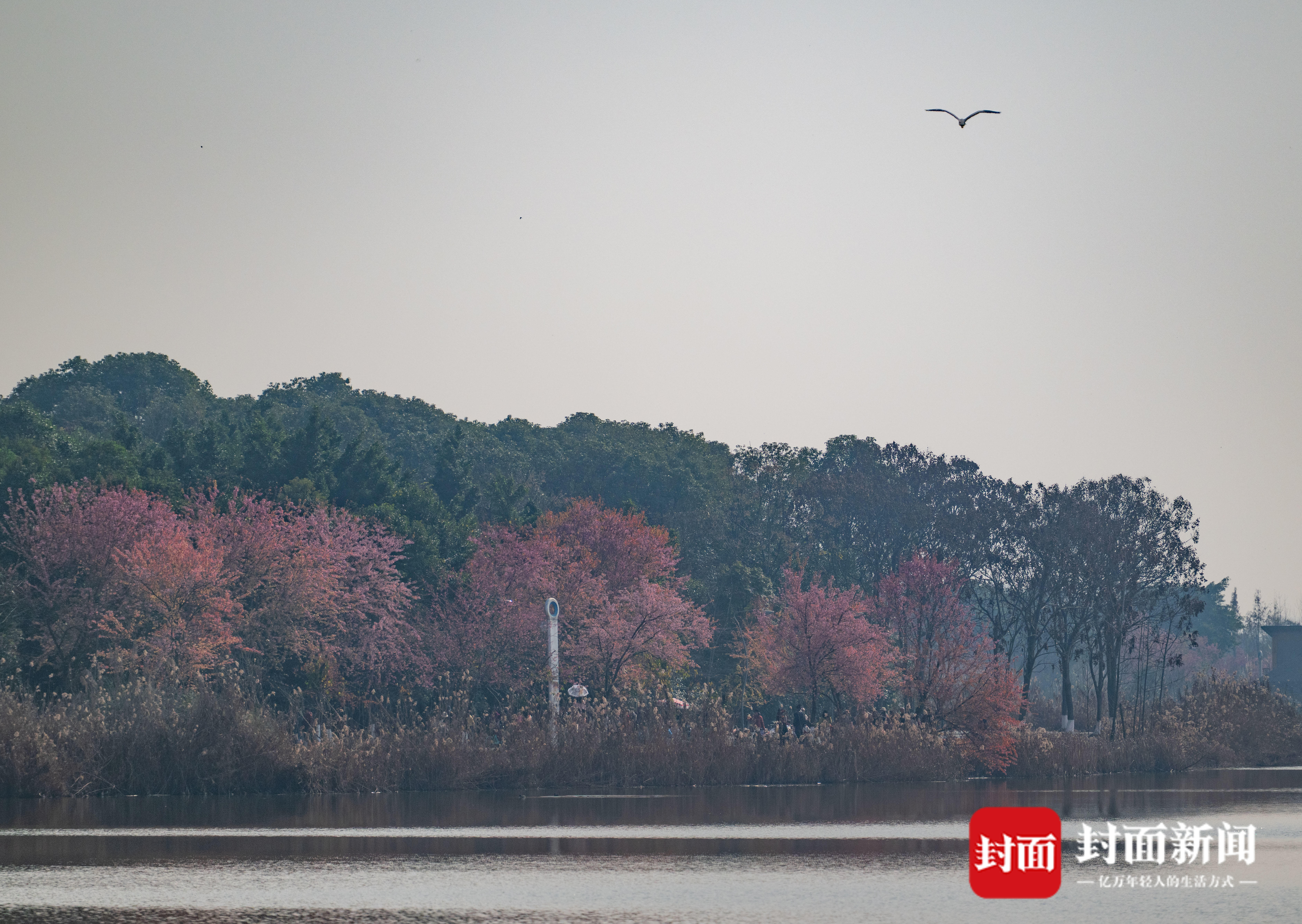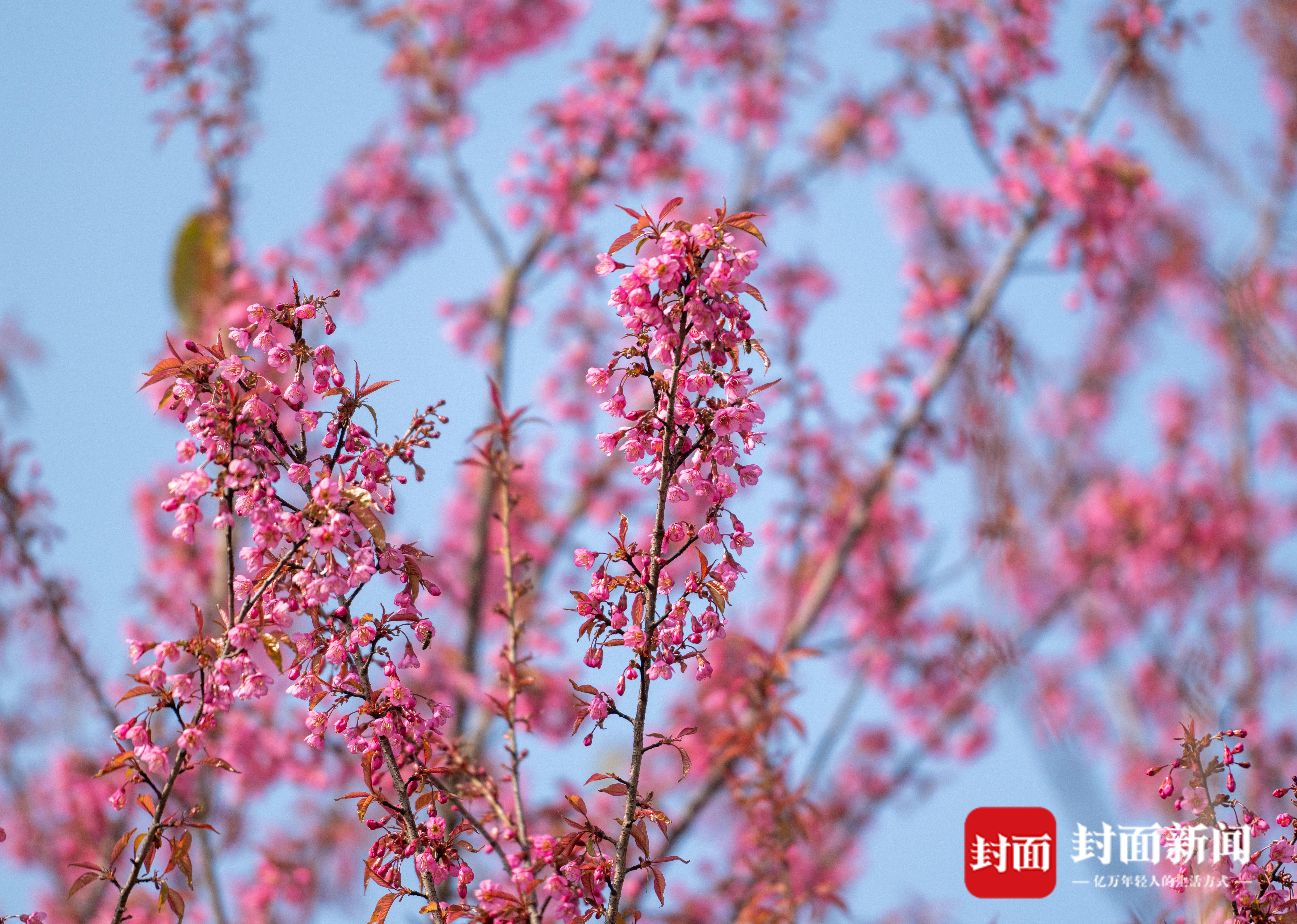 1月15日,成都青龙湖湿地公园,粉色冬樱进入盛花期。